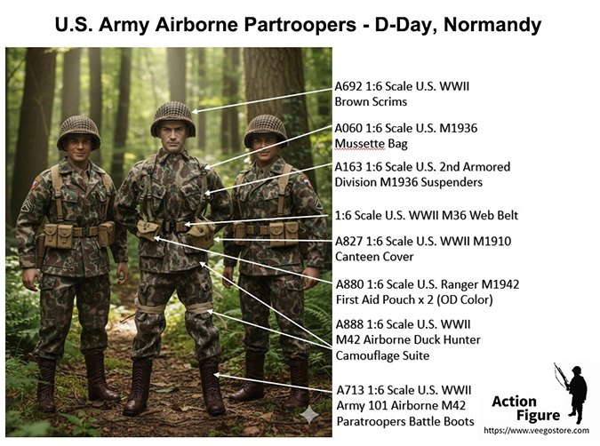 This is an Action Bundle for a 1:6 U.S. WWII Army Airborne Paratroopers - D-Day, Normandy.